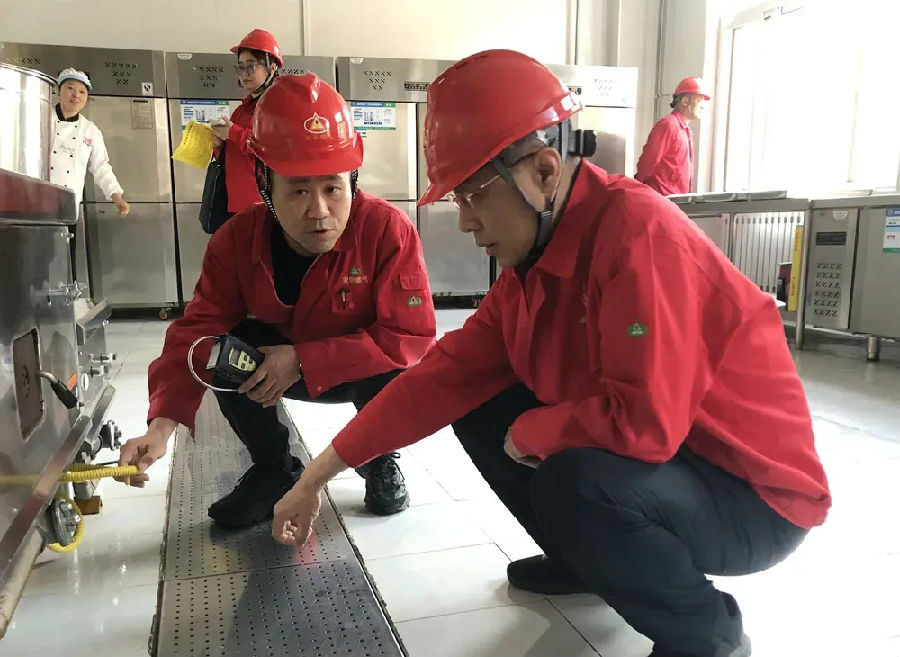 本次檢查由公司領(lǐng)導(dǎo)班子成員分組帶隊(duì),重點(diǎn)圍繞場站運(yùn)行、管網(wǎng)巡檢、施工監(jiān)護(hù)、居民用氣及辦公區(qū)域安全等關(guān)鍵環(huán)節(jié)開展全覆蓋專項(xiàng)安全檢查,并將人員密集的公服用戶作為此次檢查的重中之重。在愛琴海購物公園檢查時(shí),檢查組不僅檢查了燃?xì)夤艿馈⒃罹叩仍O(shè)施的使用狀況,還對相關(guān)工作人員進(jìn)行了安全用氣知識培訓(xùn),指導(dǎo)他們?nèi)绾握_使用燃?xì)庠O(shè)備、如何在緊急情況下進(jìn)行應(yīng)急處置。同時(shí),工作人員還提醒公服用戶在五一假期人員流量增大的情況下,更要關(guān)注燃?xì)庠O(shè)施運(yùn)行狀態(tài),保障用氣安全。