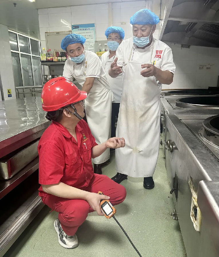 安全專項檢查中,公司專業(yè)技術(shù)人員對學校食堂內(nèi)的燃氣管道、閥門、燃氣灶具、燃氣泄漏報警裝置等設(shè)施設(shè)備進行了全面細致的排查,重點檢查了燃氣管道是否存在老化、破損、私拉亂接,燃氣器具是否符合安全標準,報警裝置是否正常運行等情況。對于發(fā)現(xiàn)的隱患,當場立即落實整改,確保防患于未“燃”。